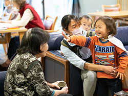 「地域にひらくグループホーム」を目指す当施設は職員の子連れ出勤も推奨しており、