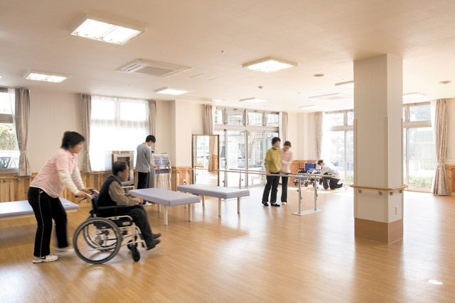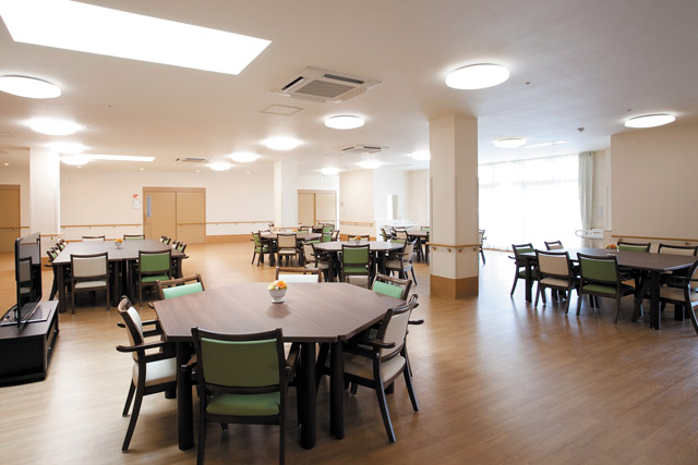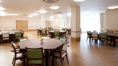 清潔さに配慮した浴室、食事や会話がゆったり楽しめる食堂や、家族相談室、談話コーナーなど。
