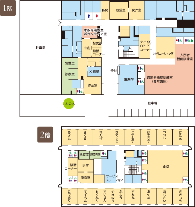 もちの木診療所について●をクリックすると施設の様子が見られます。