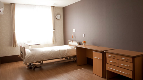 落ち着いた色彩とフローリングを組み合わせたゆとりのあるお部屋で、くつろぎながらゆったり過ごしていただけます。個室と4人部屋をご用意しています。