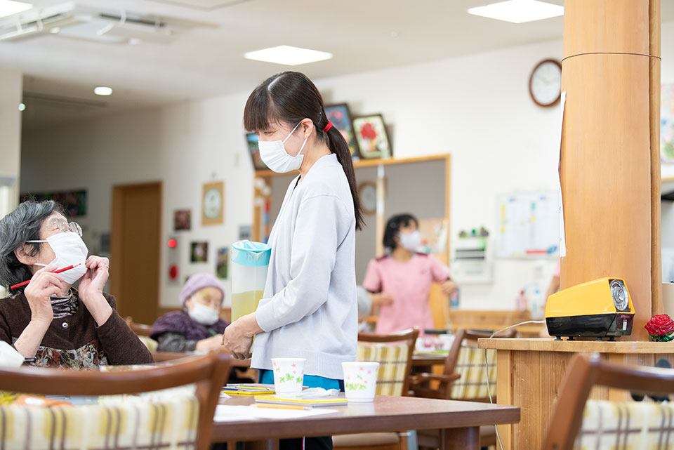 心安らぐ木の香が漂う住宅型有料老人ホーム。365日24時間スタッフが常駐して