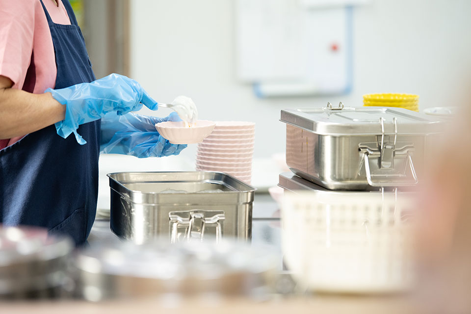 地元の旬食材をたっぷり使ったバランス食。温冷配膳車の使用でいつでも温かなごはんを楽しめます。