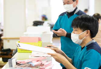 職種の壁を超えて業務を助け合って働いています。